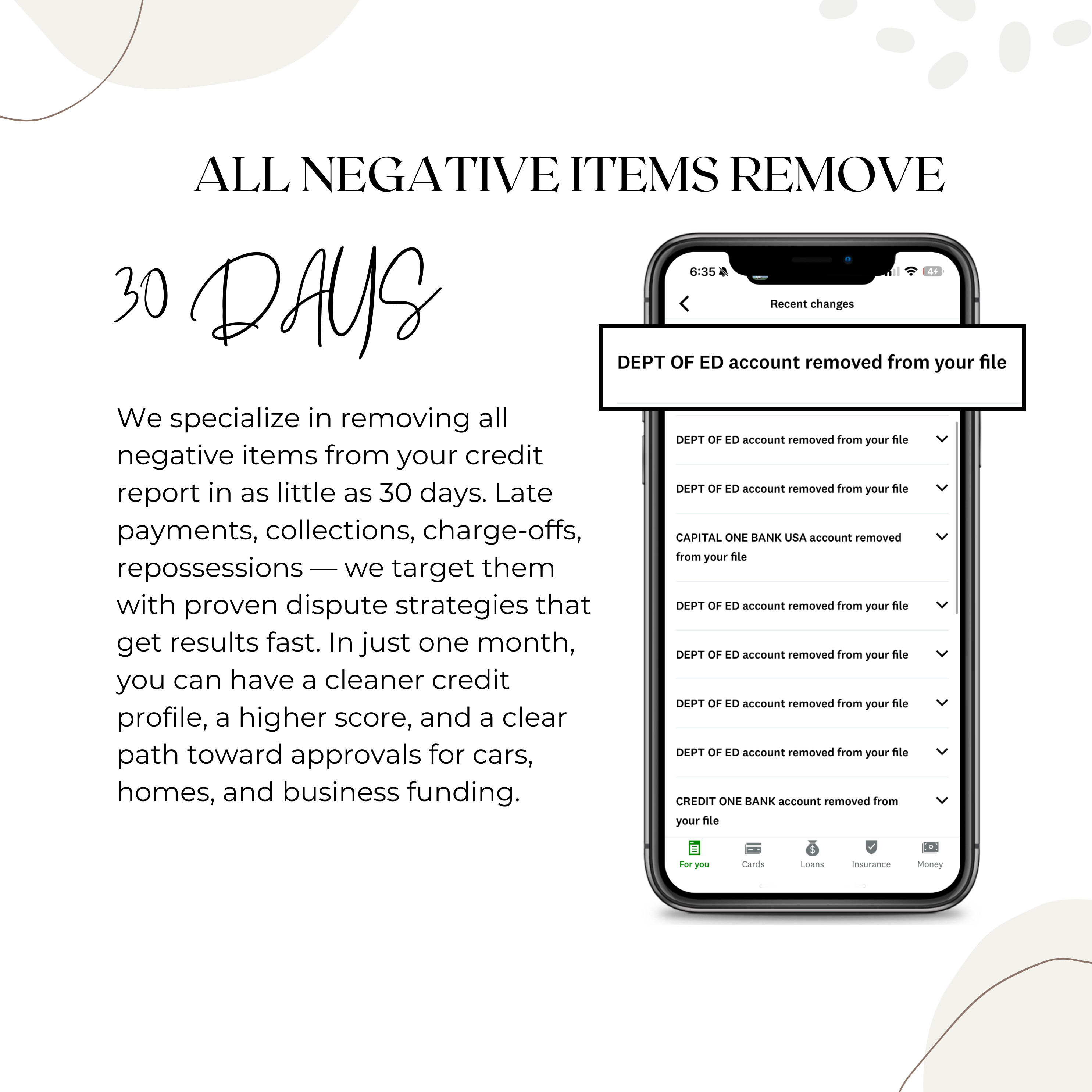 Tired of denials, high interest rates, and credit report errors? Our fast-track credit repair program boosts your score, removes negative items, and prepares you for personal or business funding — all in just one month.